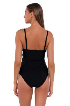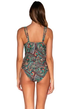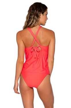 Alex classic bra tankini top features tie side closure with underwire, removable soft cups, and adjustable straps.