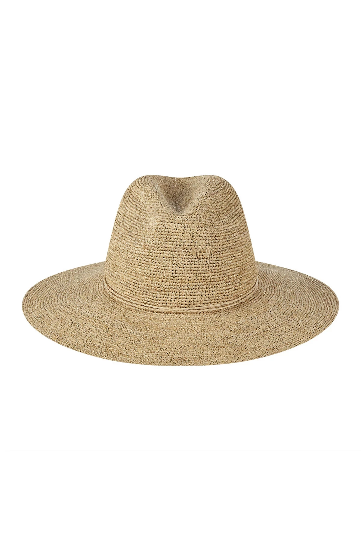 Brayden panama hat features a wide brim with a metallic thread trim.