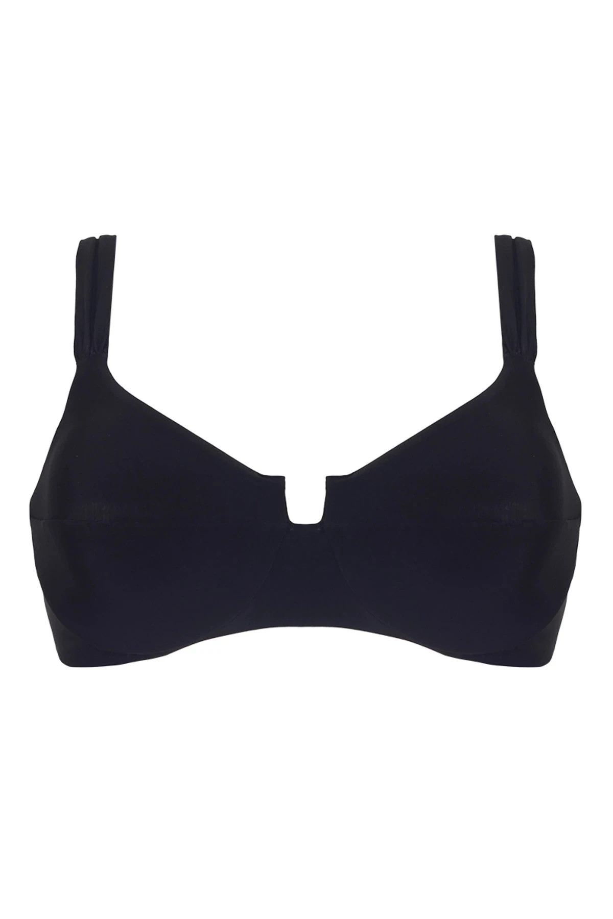 Ebba bikini top features a recycled fabric with a front notch cut out and offers adjustable thick straps and supportive underwire.