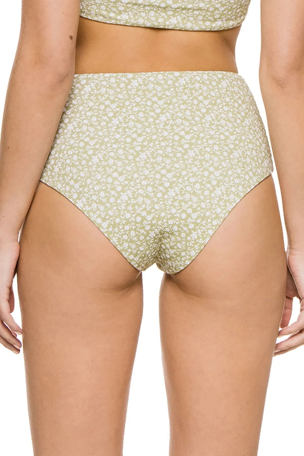 Dita high waist bikini bottom features a vintage inspired leg lengthening silhouette and offers moderate coverage.