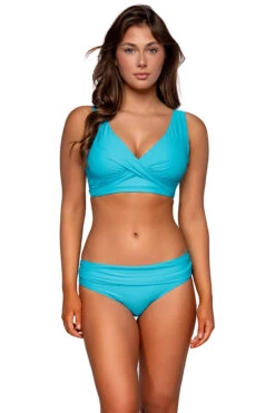 The Elsie Top is a cute, crossover style. The “V” neckline and wide straps provide just the right amount of coverage. The back stands out with its soft, criss cross interlacing tie detail. Shirring on the bust adds a soft and subtle accent. It also has an underwire and removable cups.