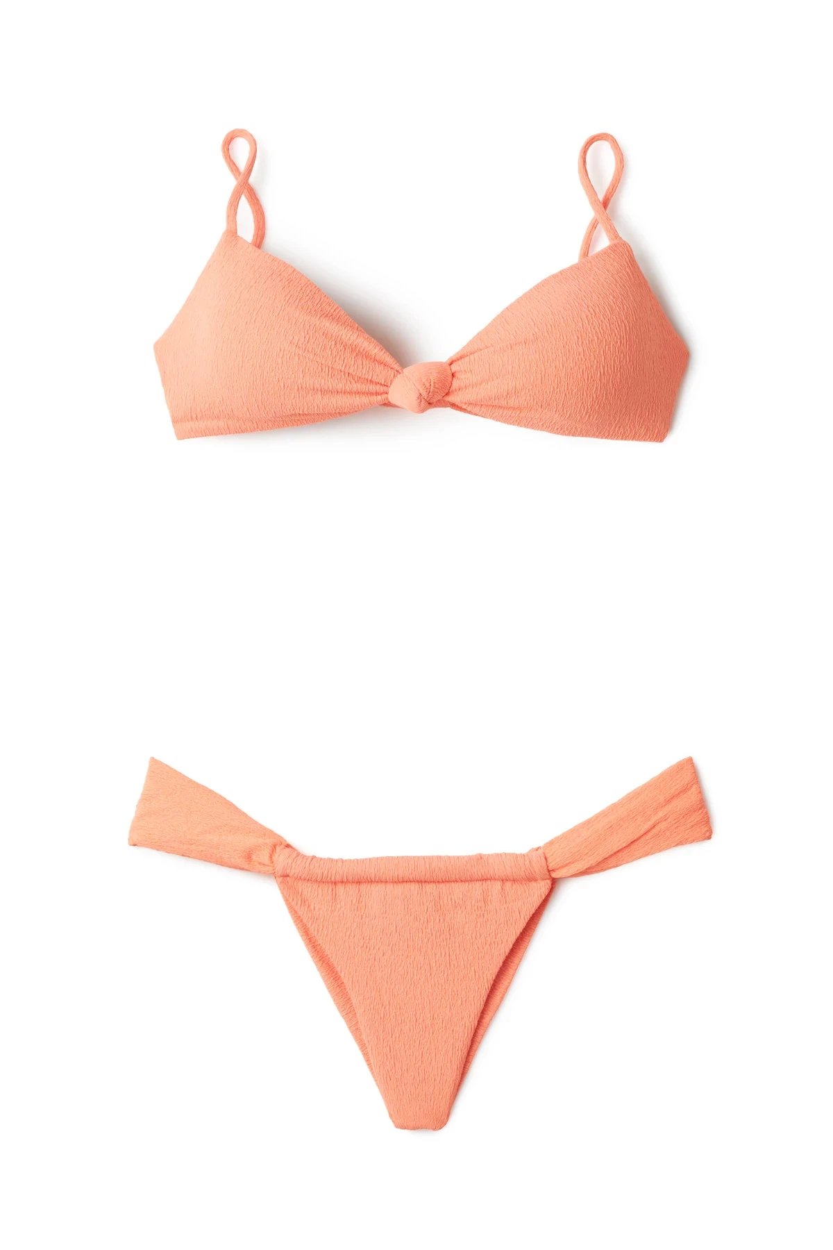 Erin bralette bikini top features a crepe textured fabrication with a center knot detail and offers thin adjustable shoulder straps.