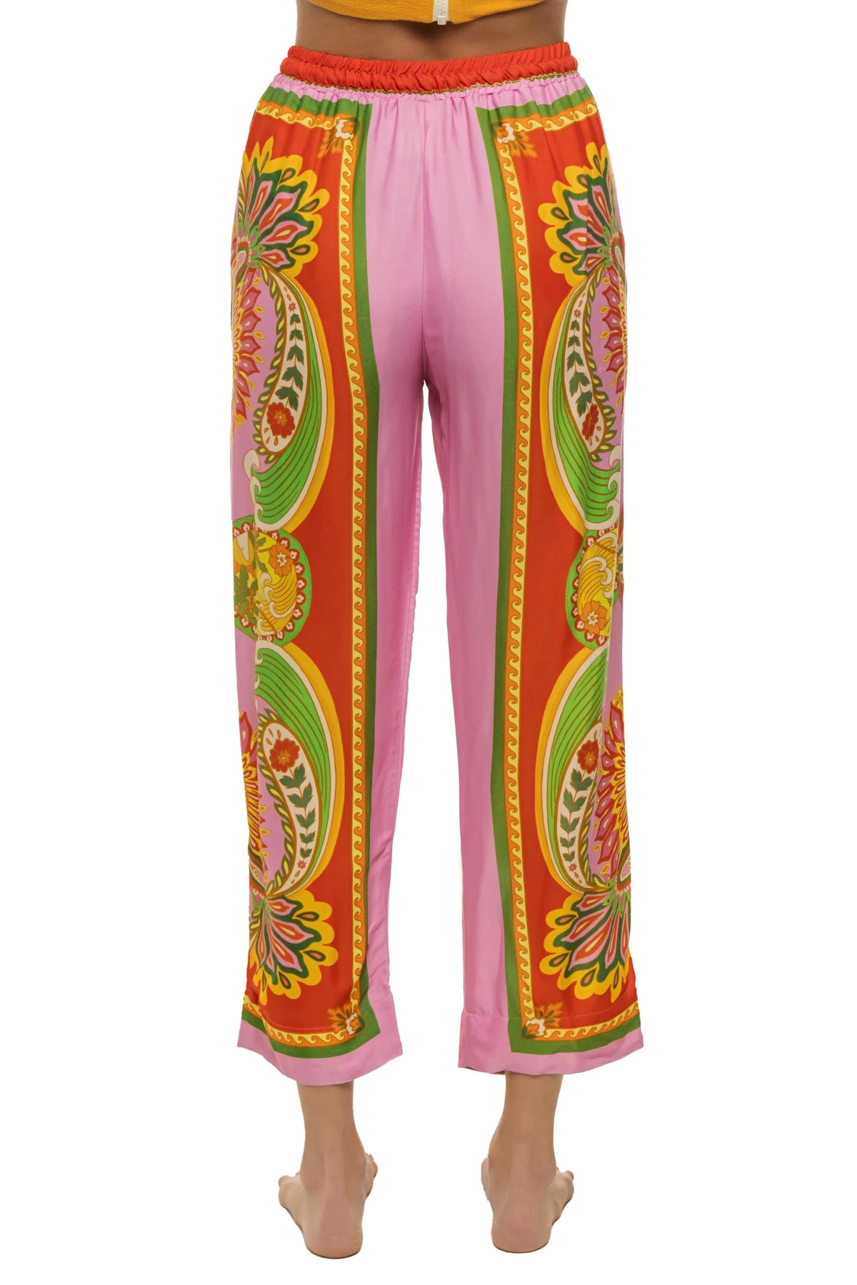 Beach toucans pants feature a scarf like fabric and offers a drawstring waistband.
