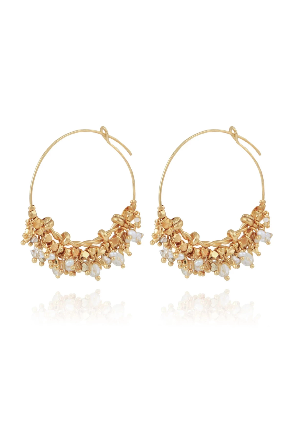 Grappia earrings are gold plated hoop earrings embellished with delicate gemstones, glass and rocaille beads.