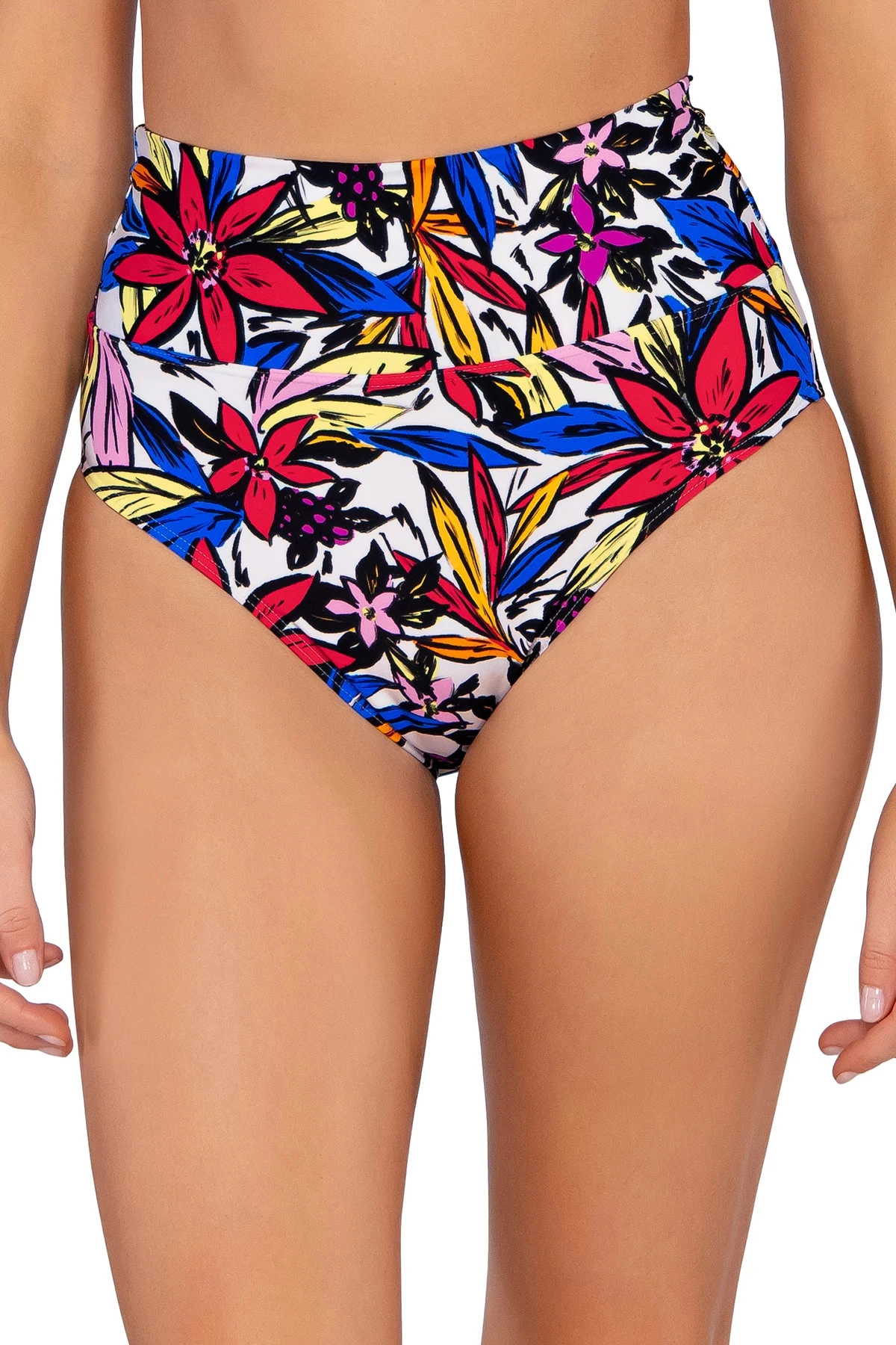 A flattering fit with a retro feel, the new Hannah High Waist bottom is the best of both worlds. Wear it high or fold down the soft band for a mid rise look. Features include matching front and back colored lining.