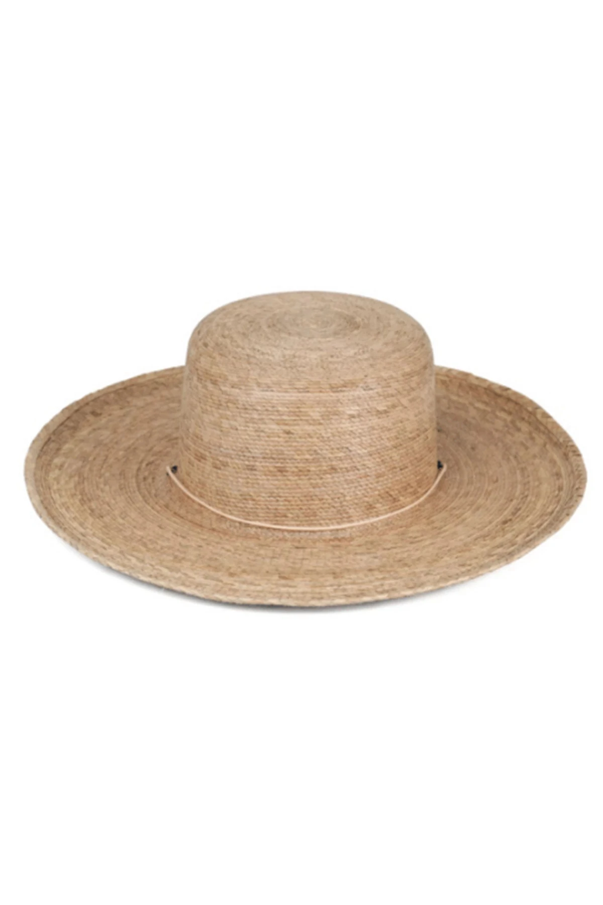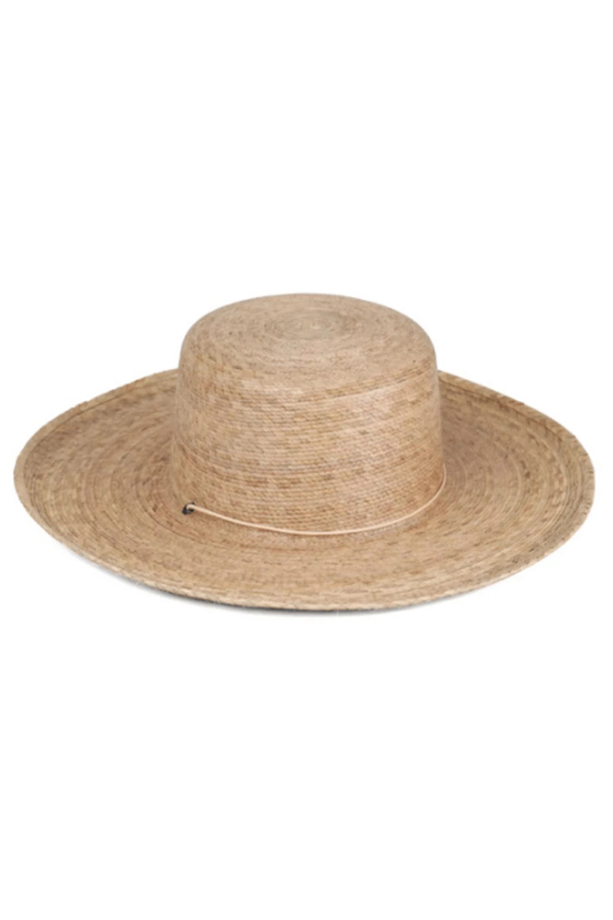 Handmade by artisans in Mexico, the Island Palma Boater Hat is made of 100% baked palm leaf and is perfect for a summer soiree or adventure of your choice. Offers a flat top boater crown and tightly woven pressed palm with flicked edge and nude waxed cotton chin strap, finished with decorative beads.