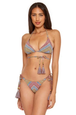 Jamaica sliding triangle bikini top features adjustable ties at the front and back, plus an 80s inspired style. Crinkle stretch fabrication offers a super stretchy, soft fit and feel.