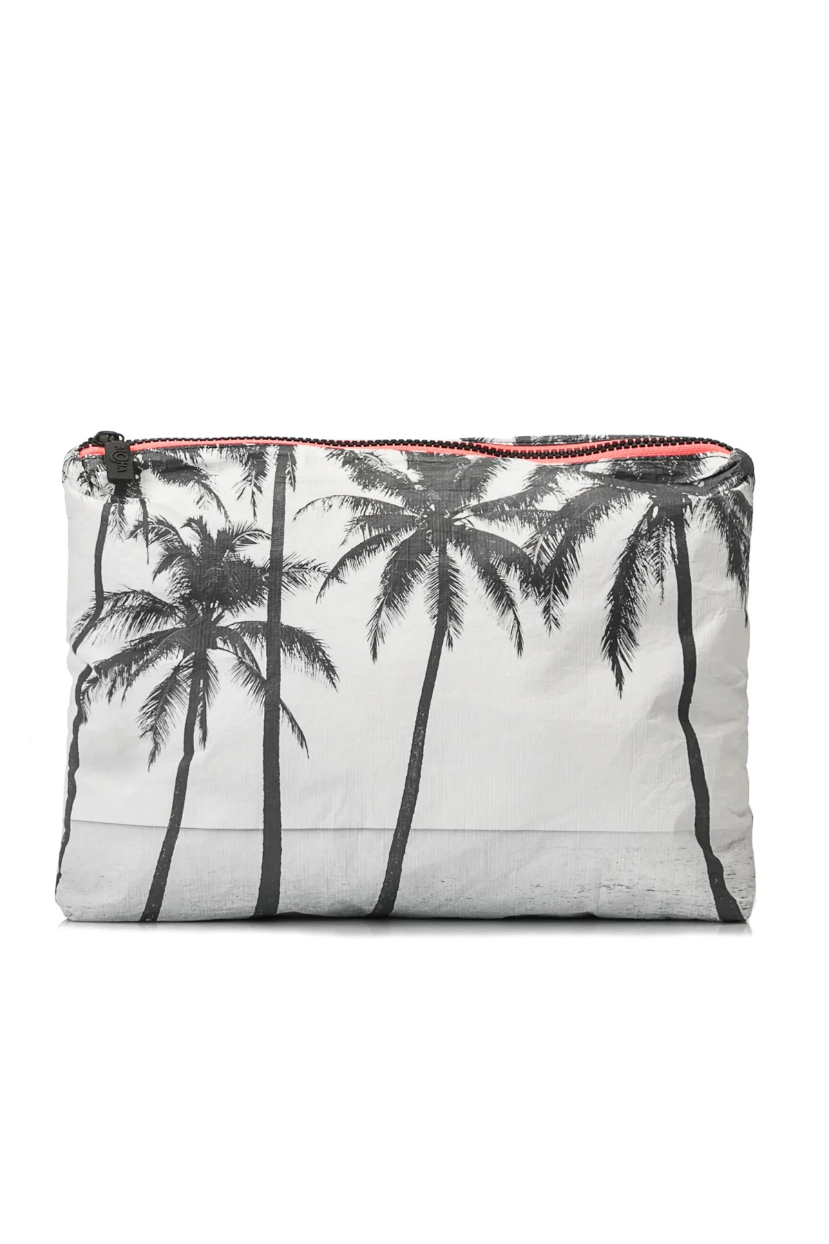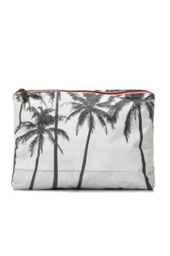 Kalapana medium pouch features a tropical print with a zipper closure.