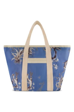 Large Vero Beach tote features side pockets and offers double woven handles and a snap button closure.