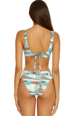The Lily top is comfortable and ideal for long days at the beach. This top has wide straps that tie for perfect adjustability and a cinched knot detail with a small keyhole.