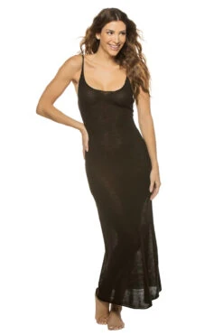 Sweater maxi dress has a waffle textured lined fabrication and offers a slightly fitted look.