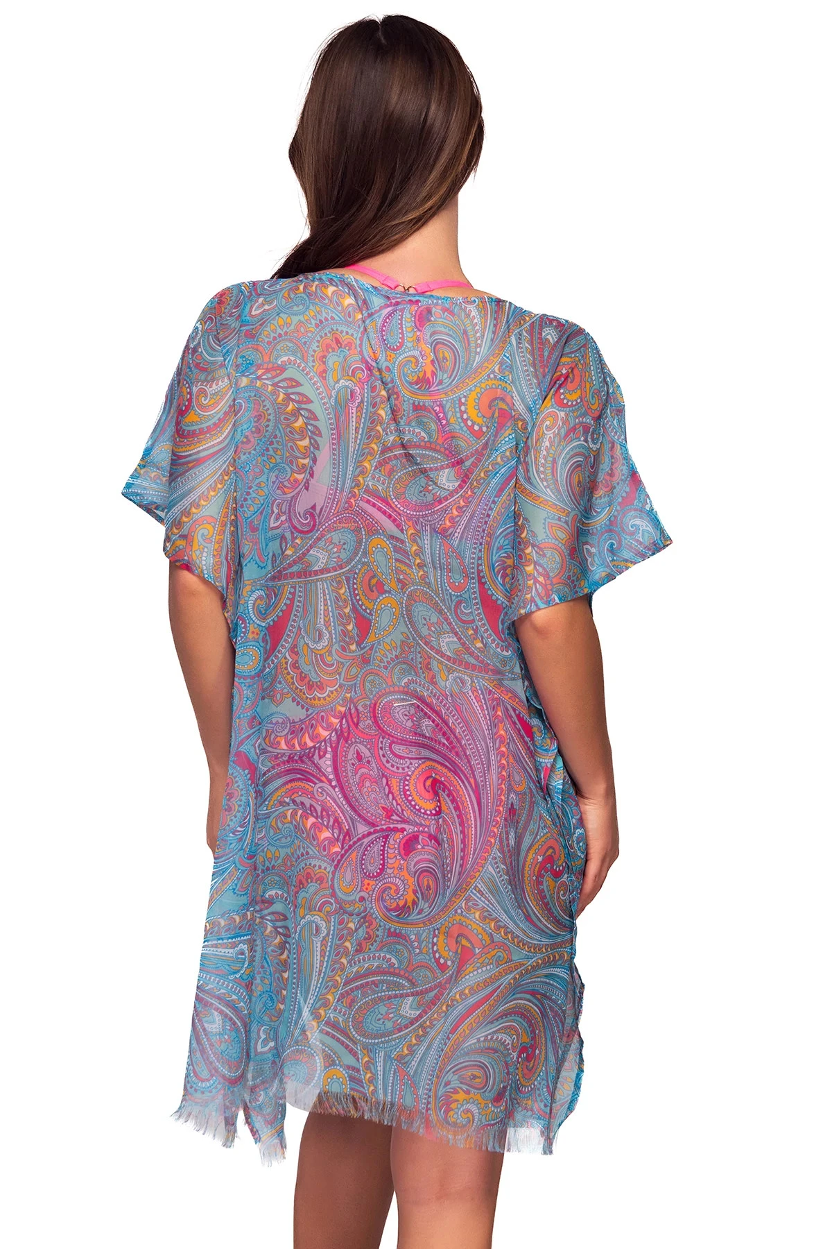 The Maldives Tunic is elegant and sophisticated. It can easily be thrown on over your beach outfit. It’s braided ties and tassels add dainty details.