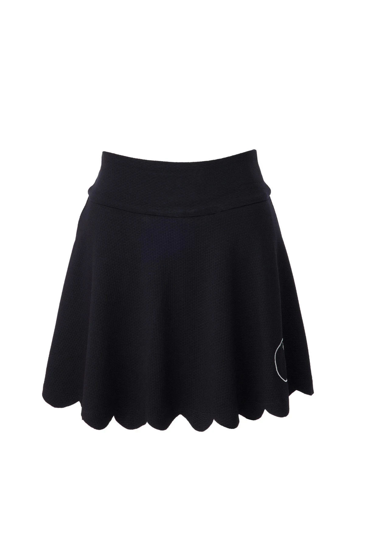 Venus skirt features a scalloped hem and offers built in shorts underneath.