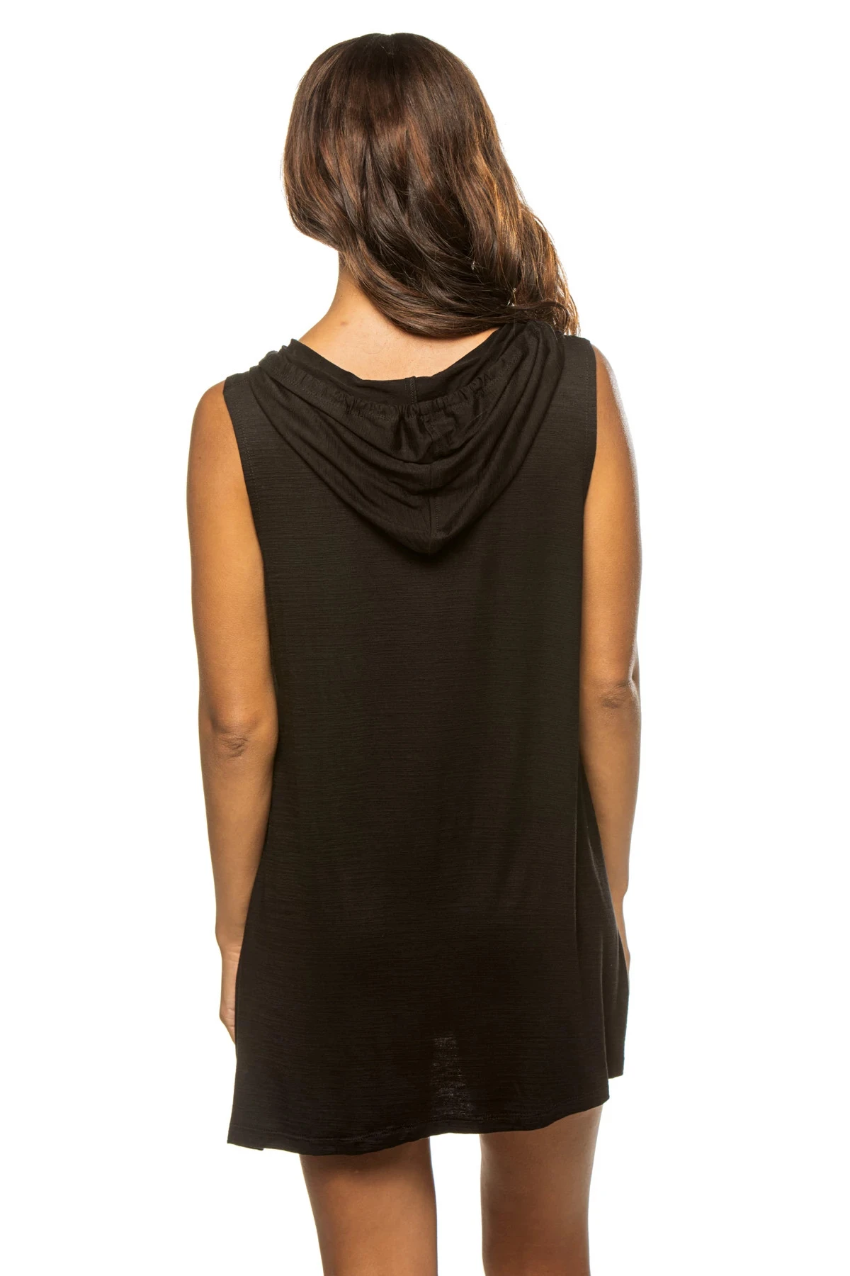 Midnight shore hooded tunic offers a full front zipper.