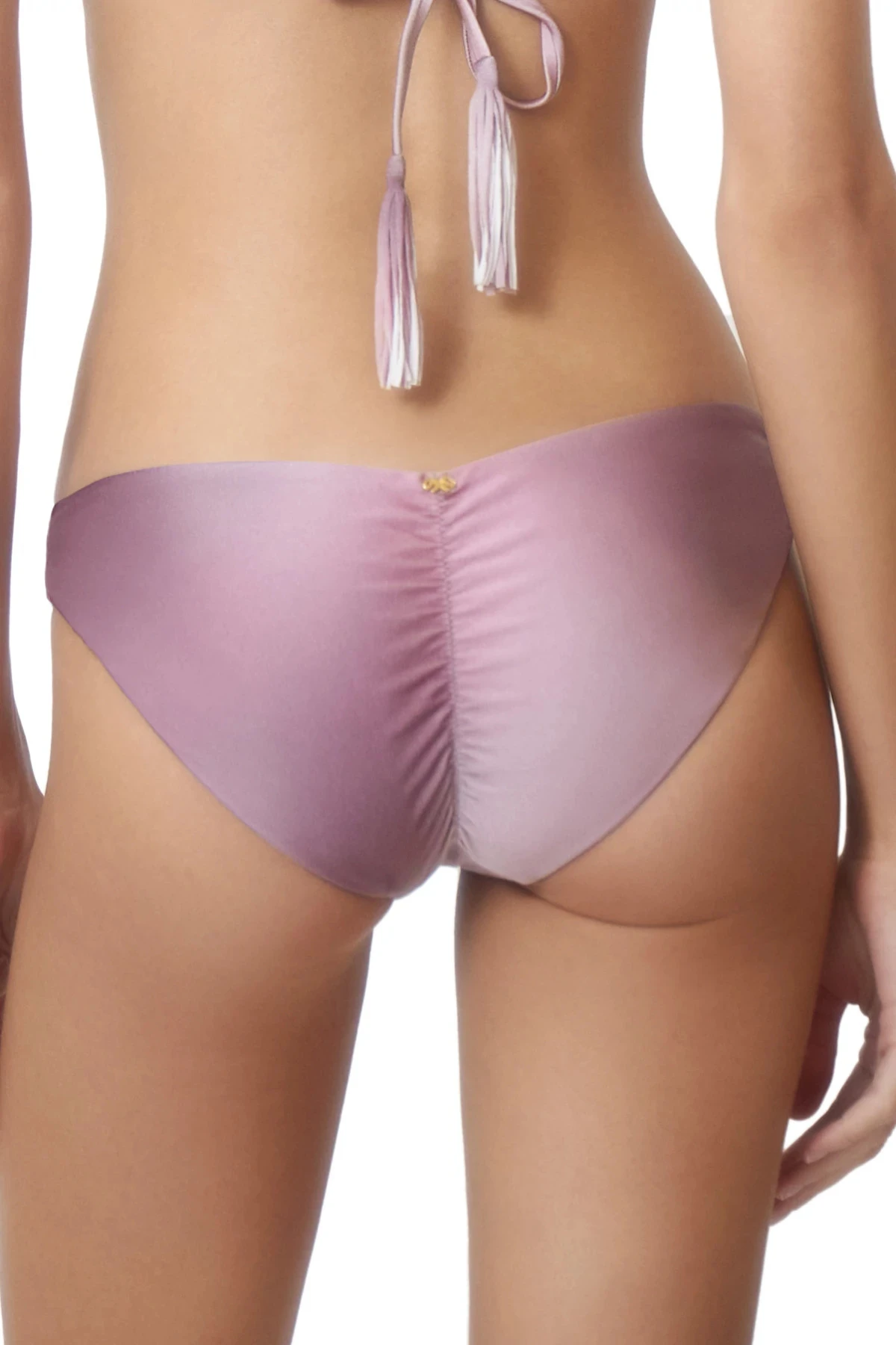 Mila basic hipster bikini bottom offers a cinch back and moderate coverage.