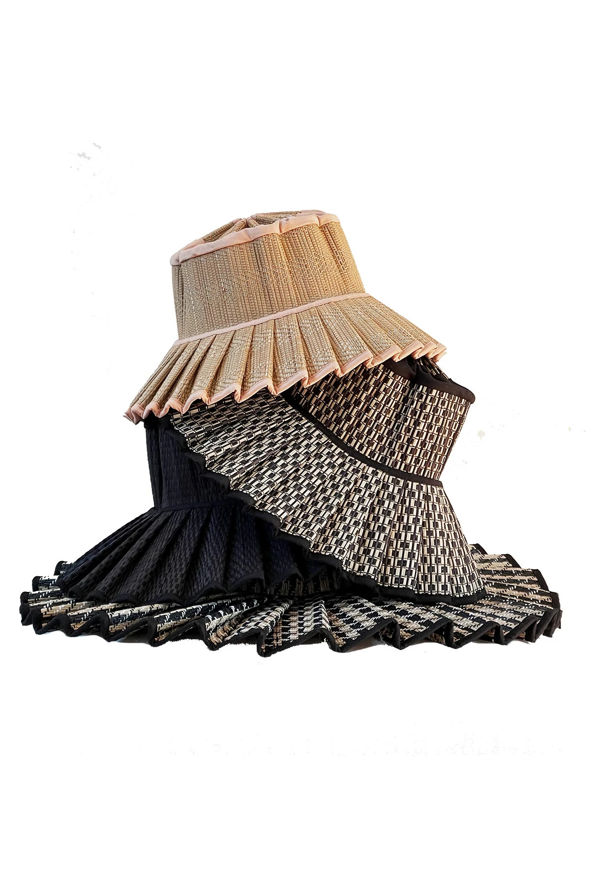 Milan sun hat features a short brim with colored thread woven in an alternating diagonal geometric pattern, through its natural grass fiber base with a soft fabric trim. Carefully handcrafted, The Milan is designed to fold like origami and offers optional ties at base for anchoring breezes.
