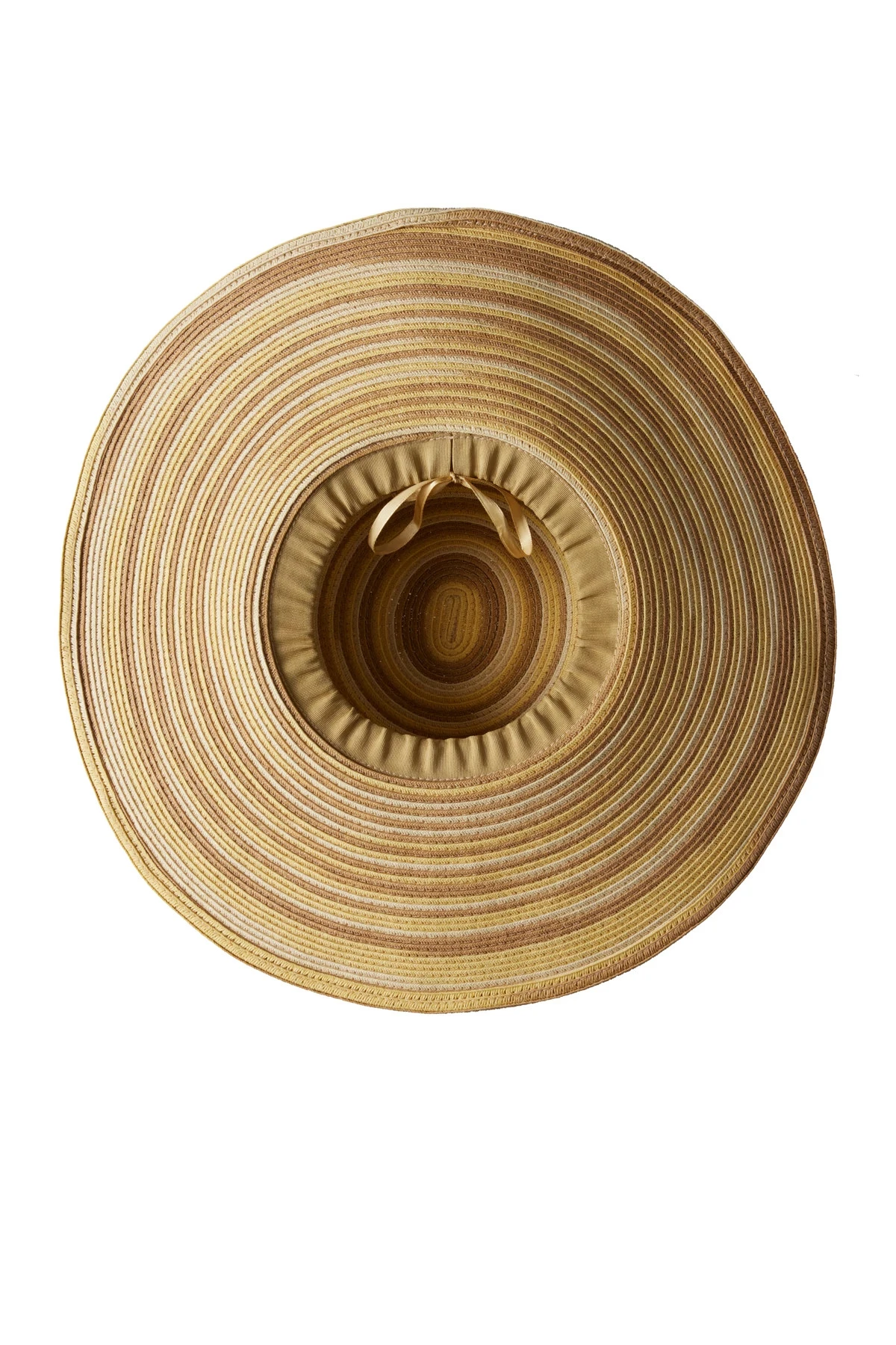 Wide-brimmed natural sun hat featuring an alternating colored pattern. Offers an adjuster on the hat’s interior.