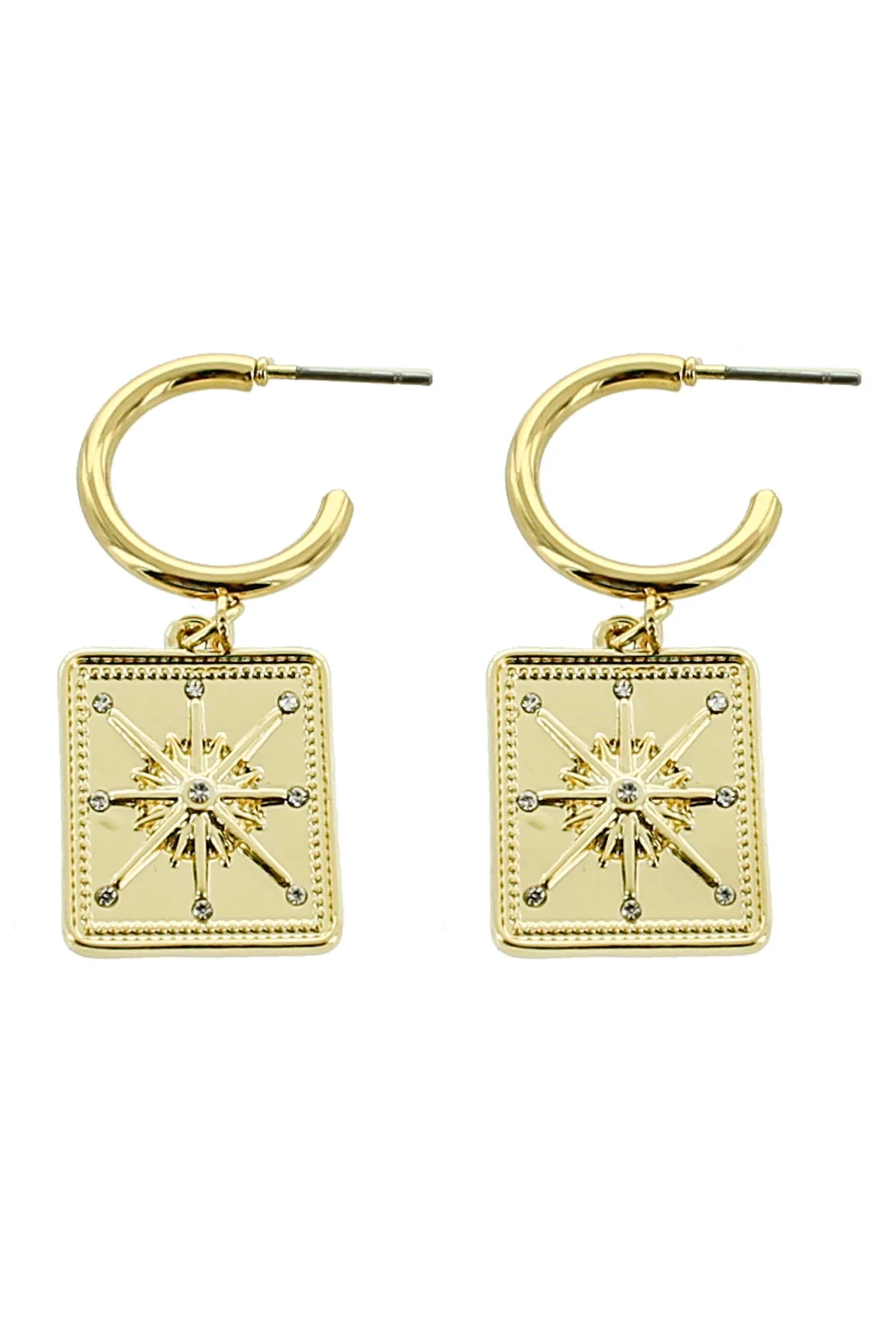 Huggie earrings feature a drop navigation charm with a push back closure.