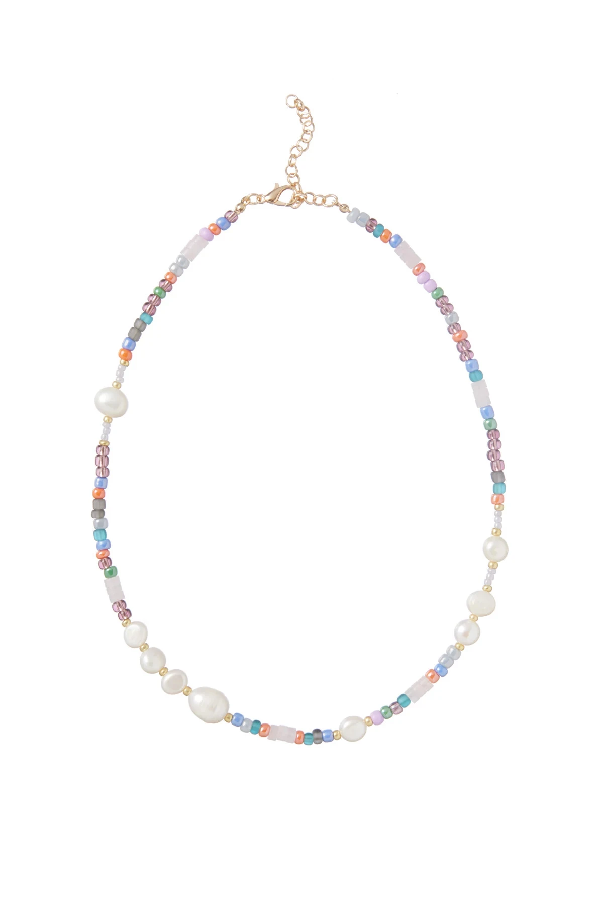 Necklace features pearl and multi-colored beads and offers a lobster clasp closure.