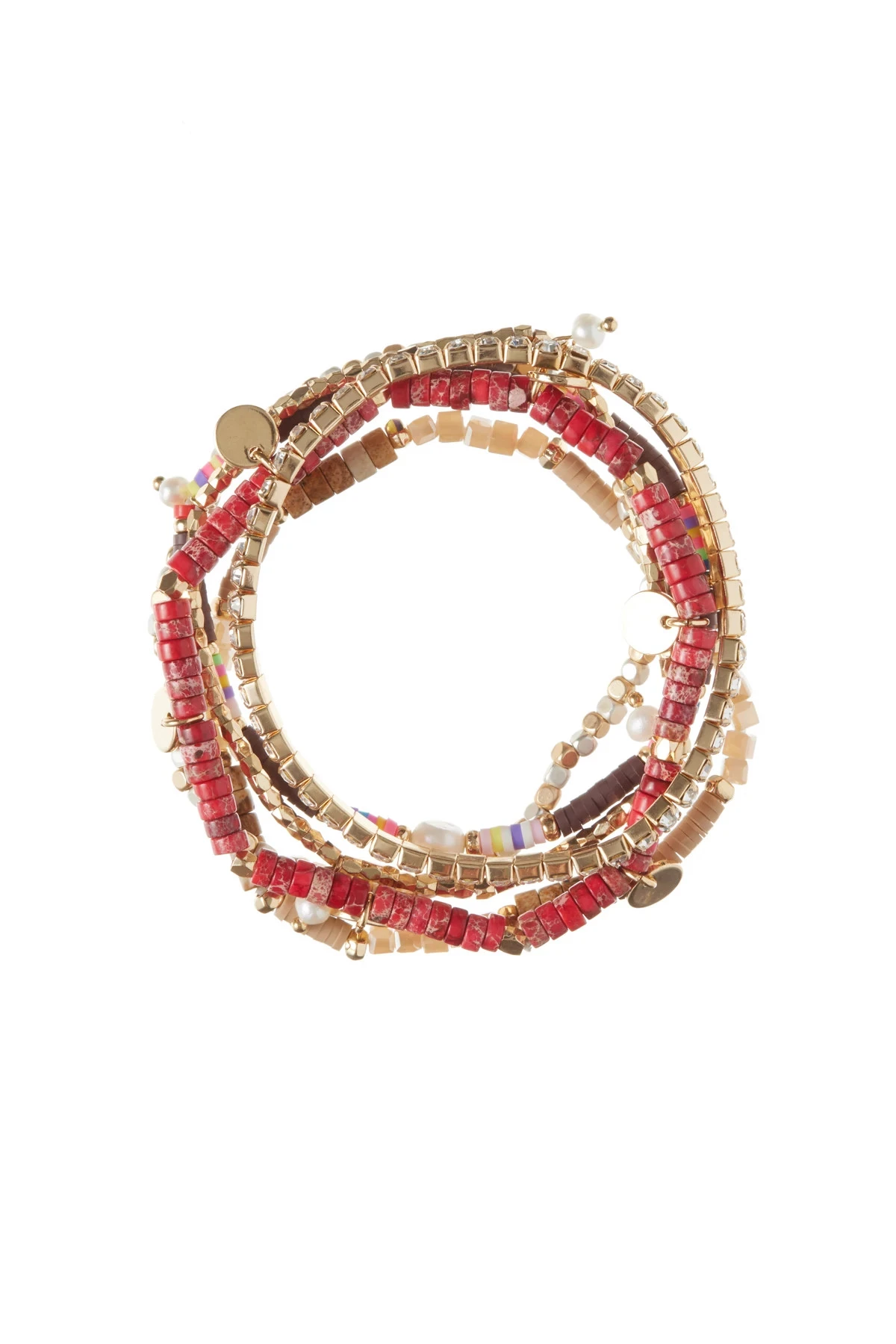 Bracelet set features an assortment of multi-color beaded bands with rhinestone, pearl, and charm accents.