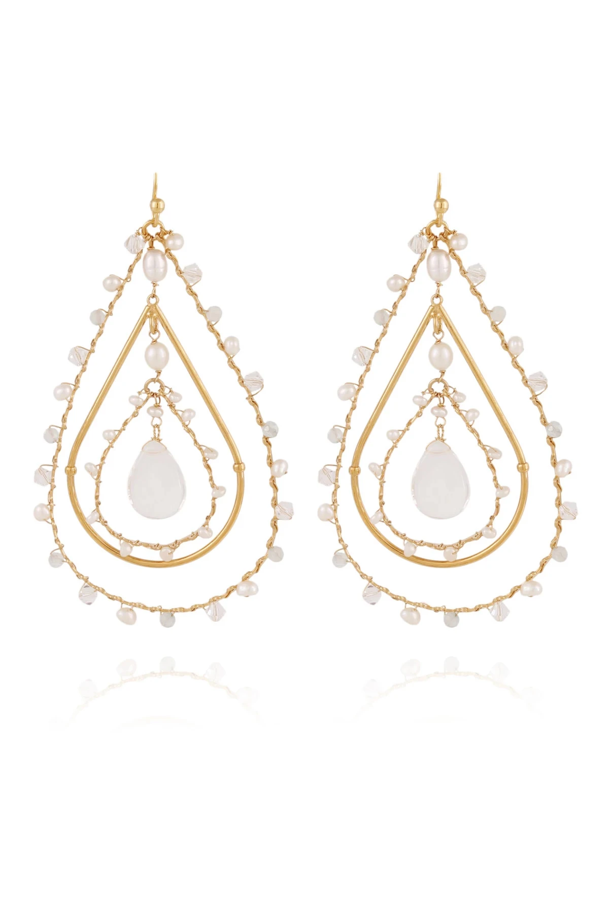 Orphee earrings feature gold plated drops with a center stone and adorned with dainty gemstones.