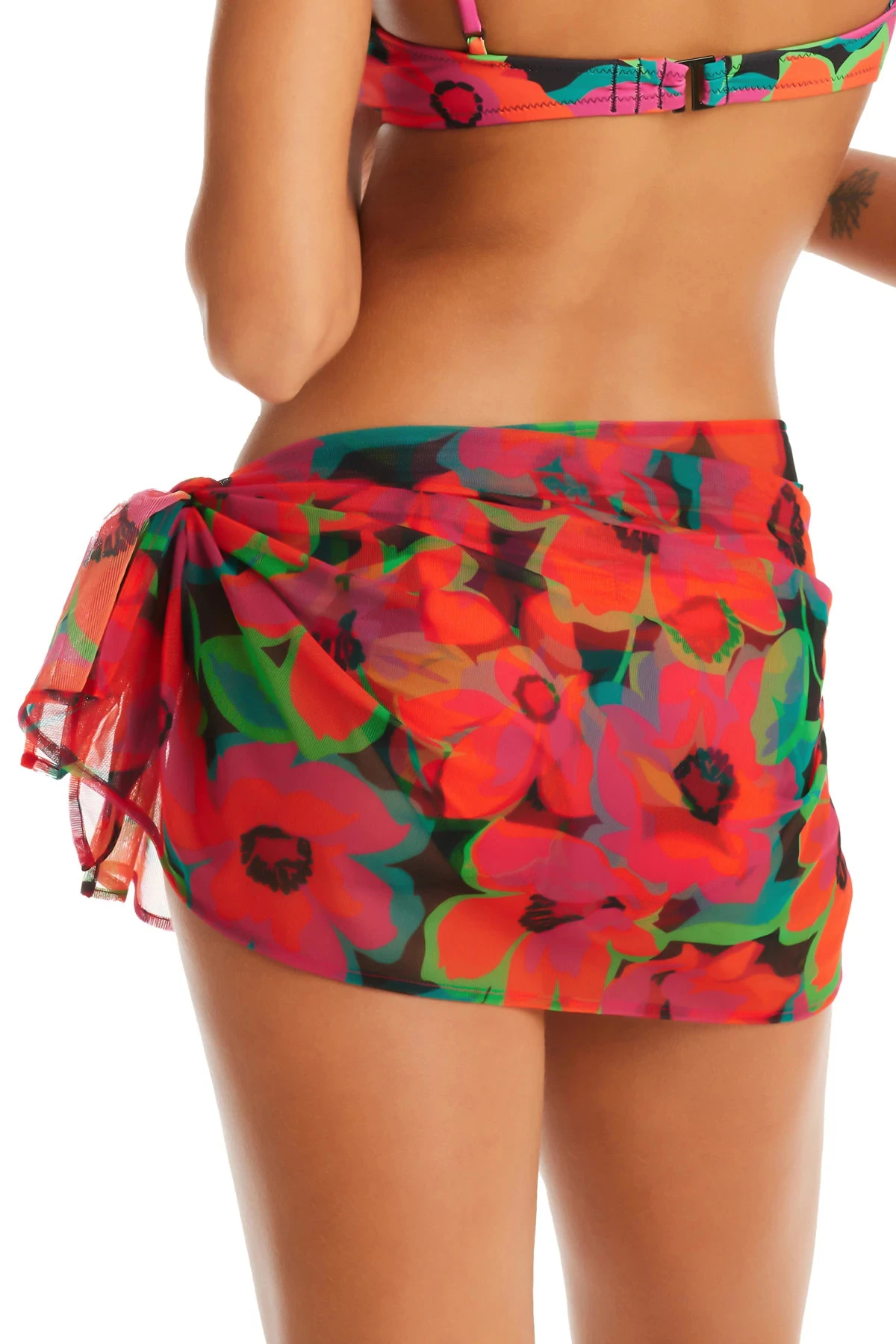 Sarong features a floral print and offers a self tie waist.