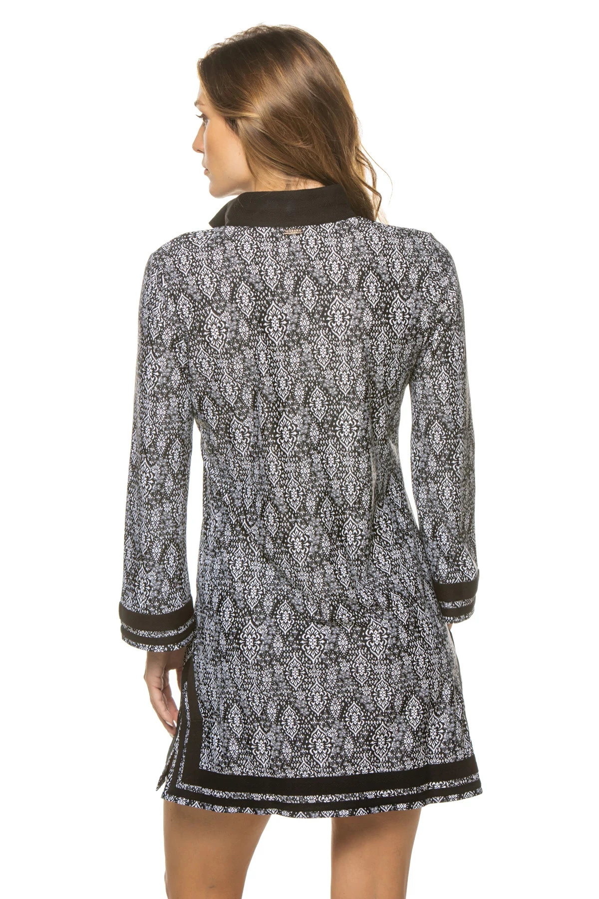 Sanibel tunic features a collared v-neckline with long sleeves and offers twill tape details on the collar and hem for a classic and chic look.