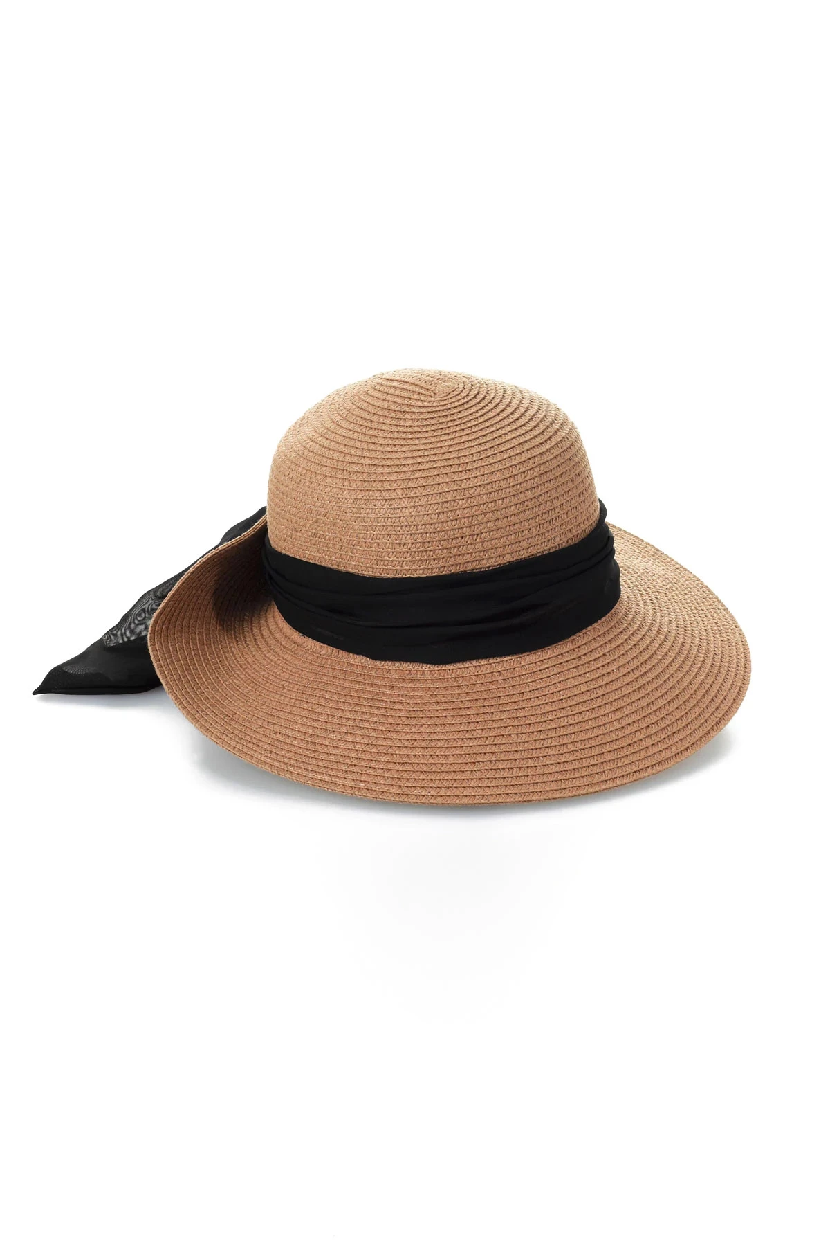 Raffia sunhat with scarf trim. Offers UPF 50 sun protection.
