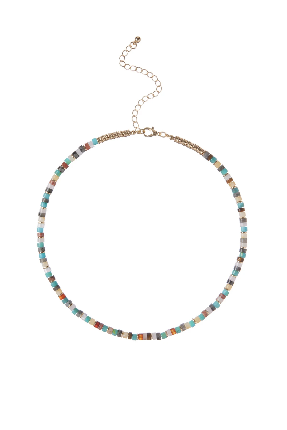 Necklace features multi-colored stone beads and offers a lobster clasp closure.