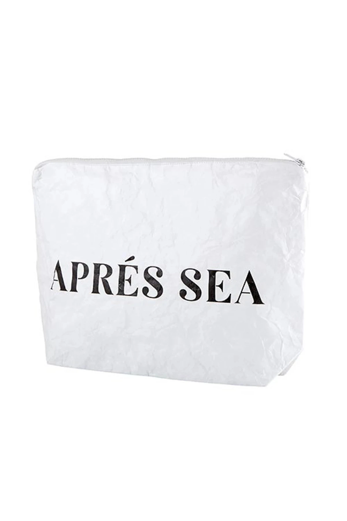 Travel bag set features two different sized pouches that have bold text graphics with a zipper closure.