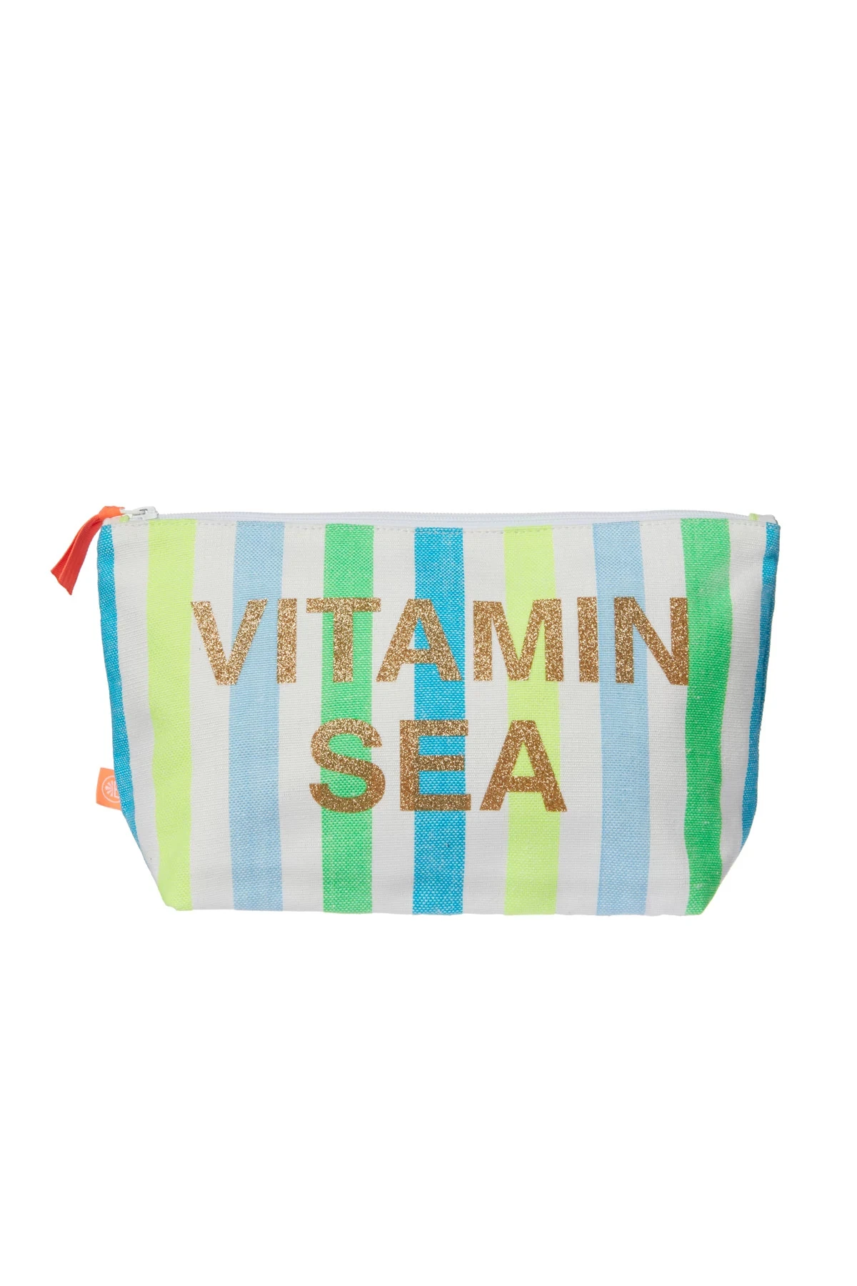 Vitamin Sea clutch features colorful stripes with a metallic graphic and offers a zip closure.