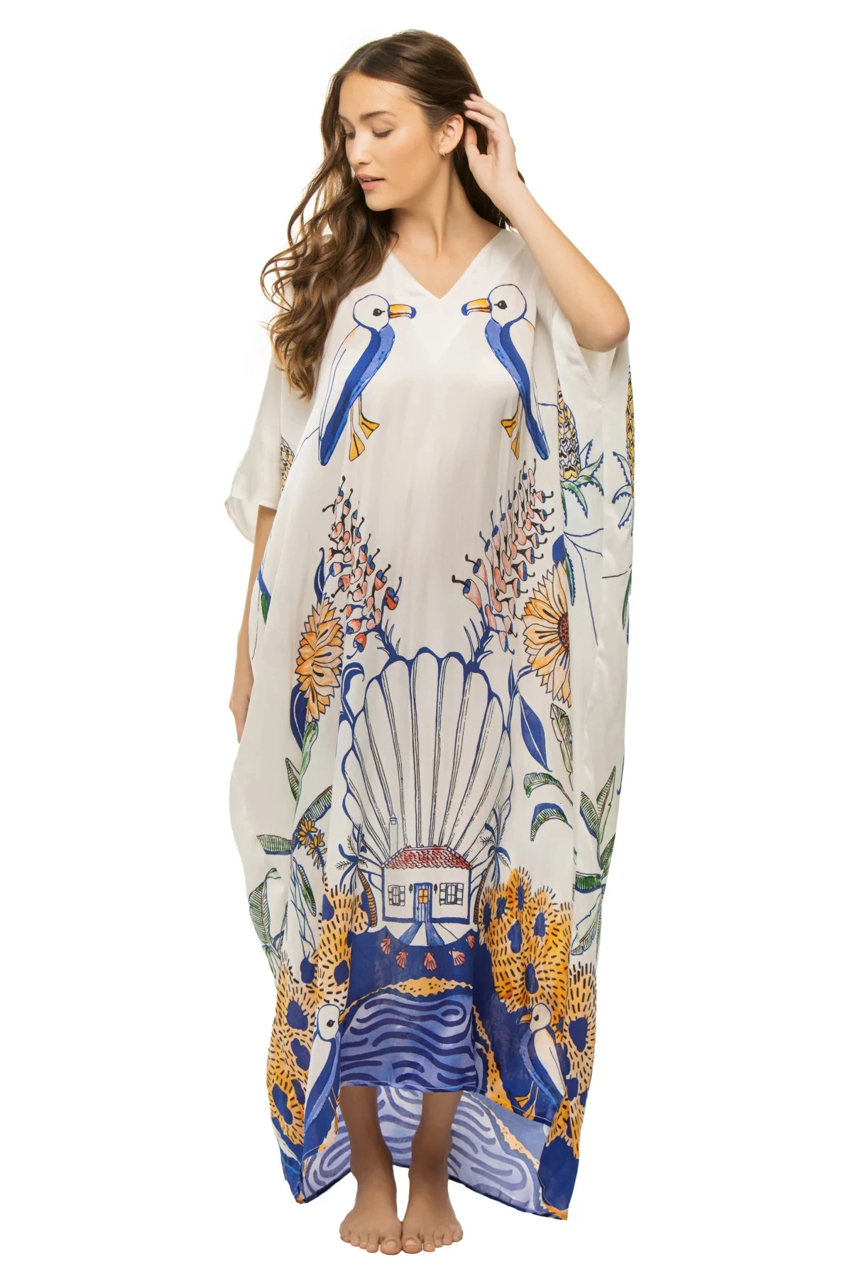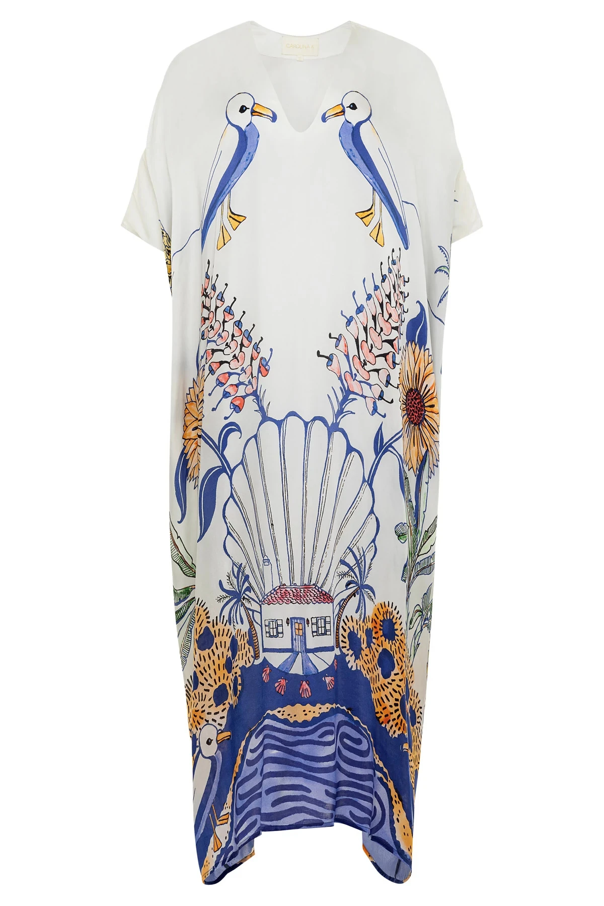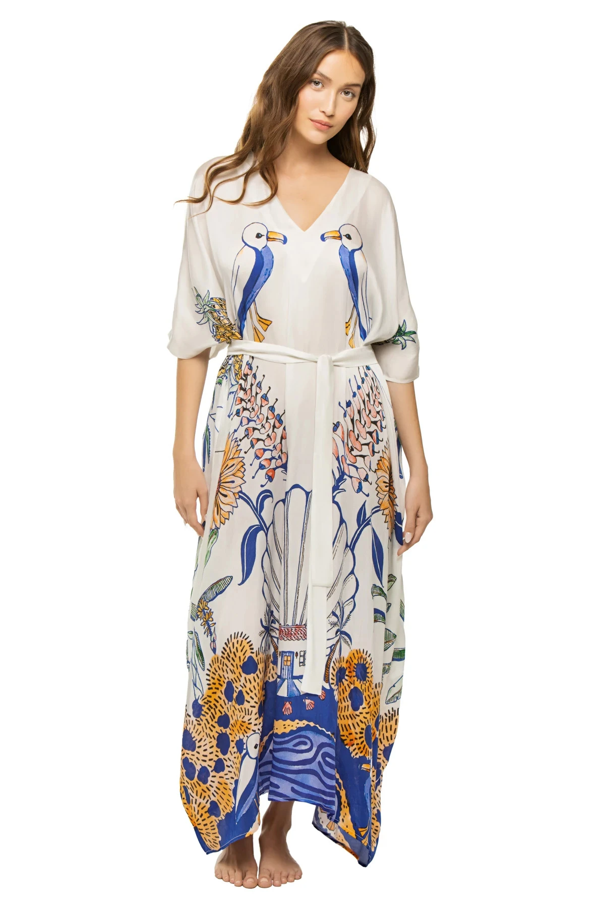 Xim maxi caftan features a symmetrically placed print and offers a v-neckline and open butterfly sleeves.